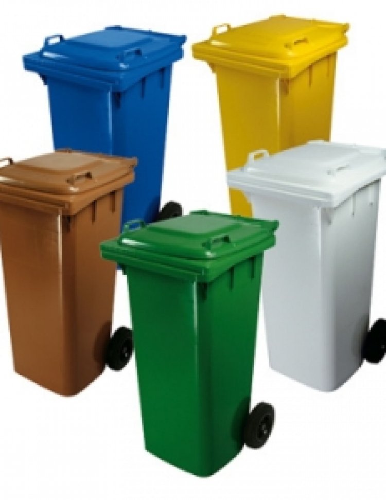Portaimmondizie lt.240 con ruote e anello per la raccolta di rifiuti organici e non, dimensioni 73x57x107H. DISPONIBILE IN VARI COLORI