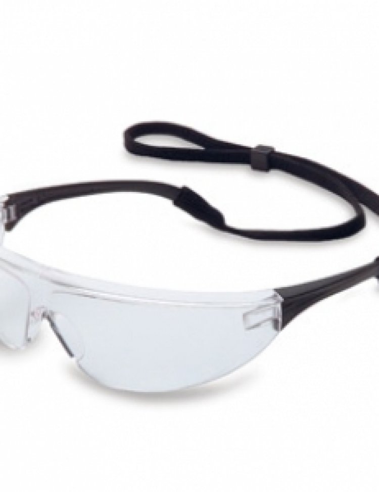 Occhiali leggeri con lente in policarbonato, monopezzo, antiurto, antigraffio, astine in nylon, con cordino. CONFEZIONE da 10 pezzi. Cartone da 50 pezzi.