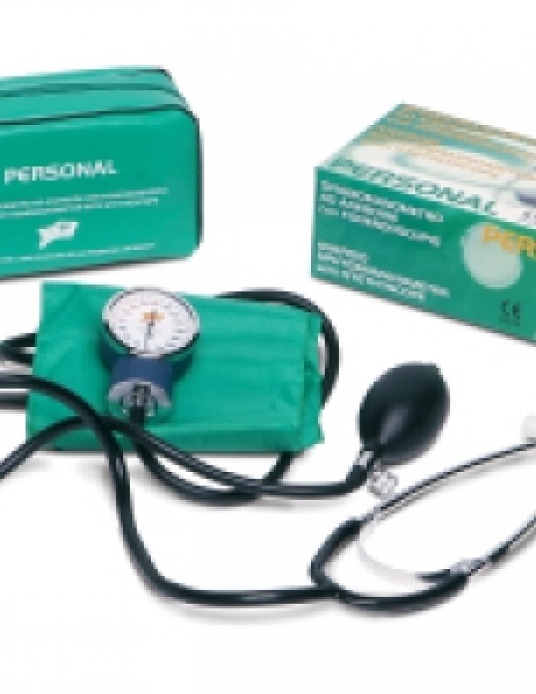 SFIGMOMANOMETRO AD ANEROIDE CON FONENDOSCOPIO Bracciale in nylon con chiusura a velcro. Fonendoscopio a testa piatta fissato sul bracciale, custodia in similpelle con cerniera